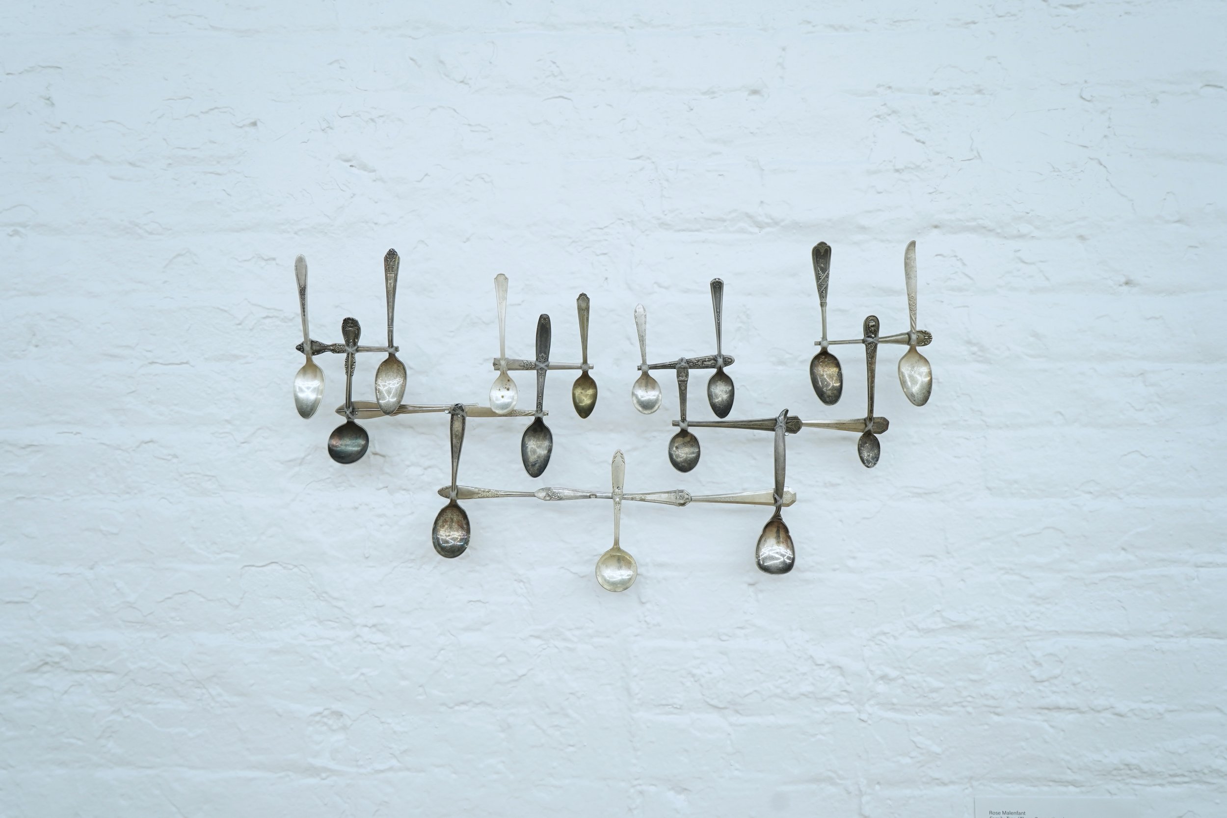 Family tree (Three Generations), 2025, found spoons, thread, resin