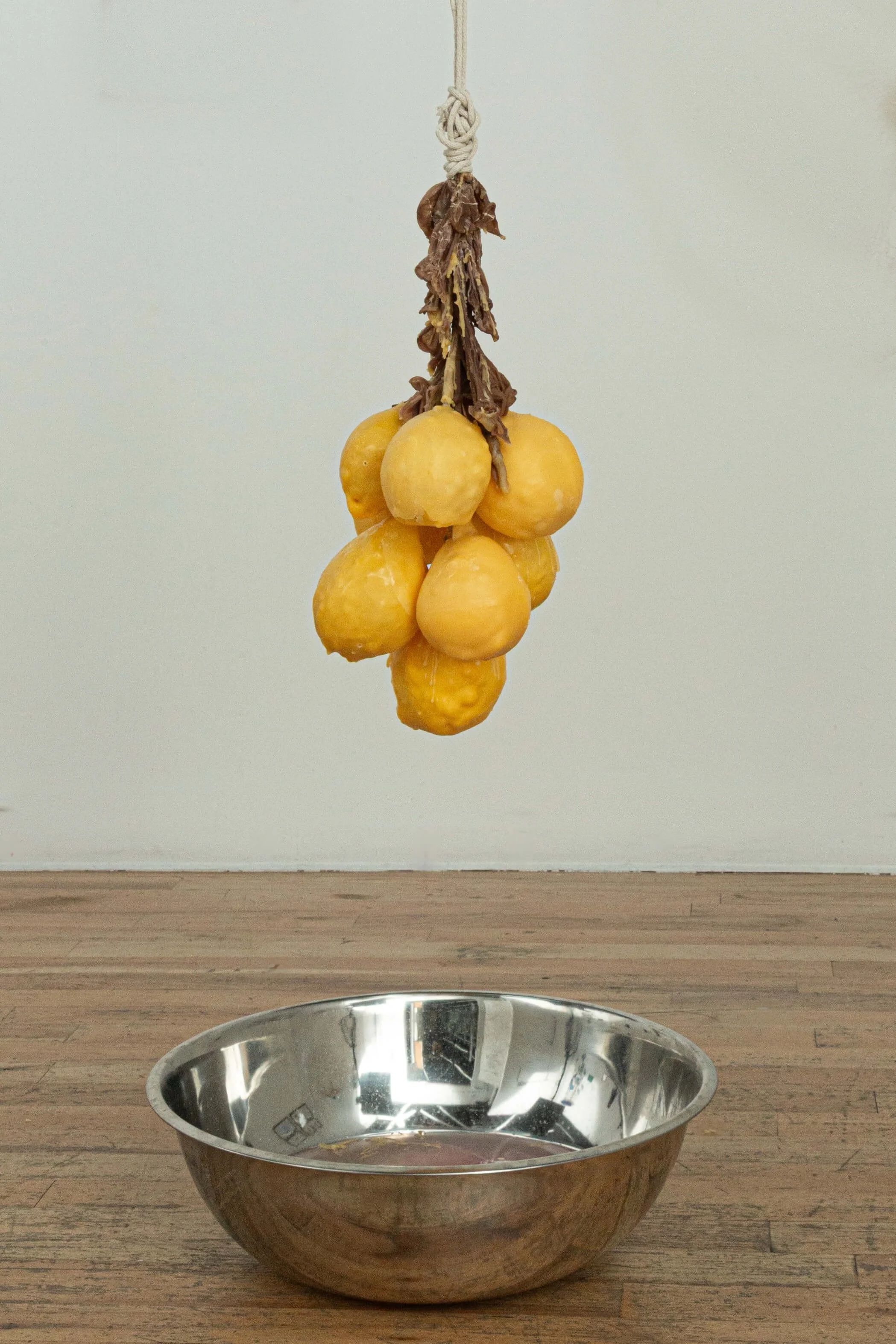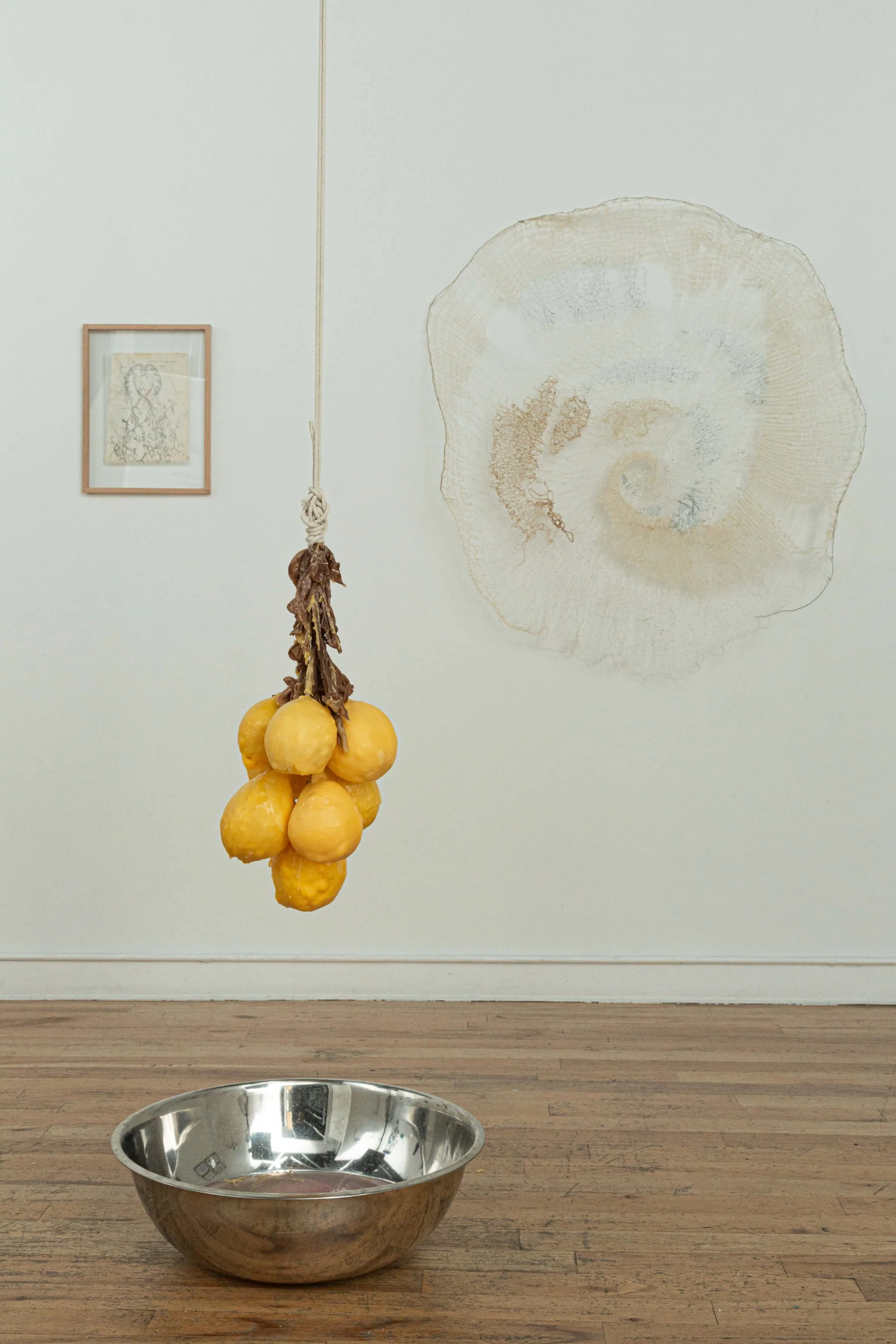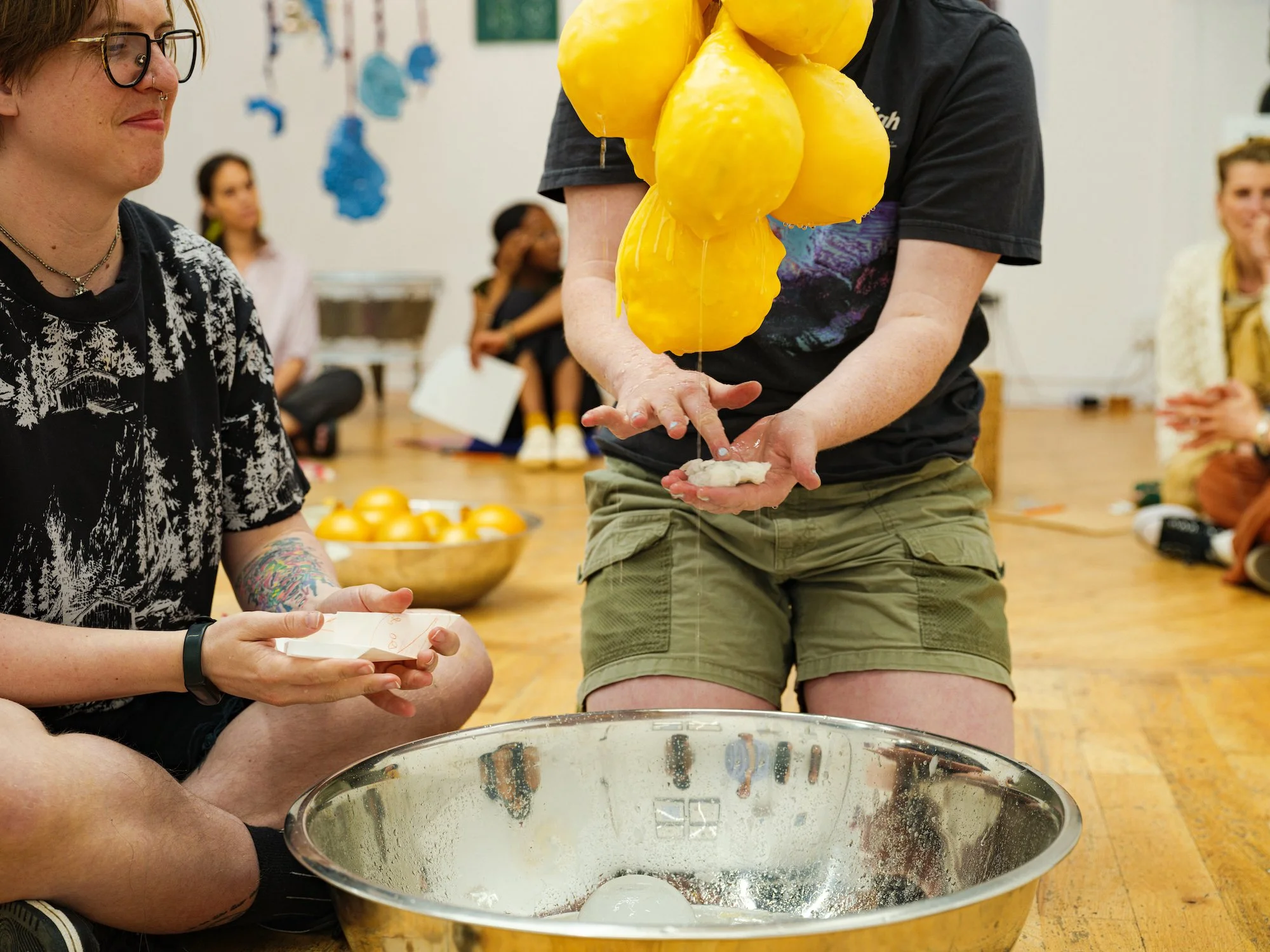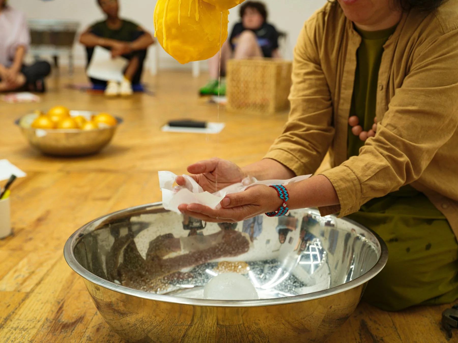 What Water We Wash In, 2025, water cast in beeswax, nylon, found mixing bowl & participatory activation photos